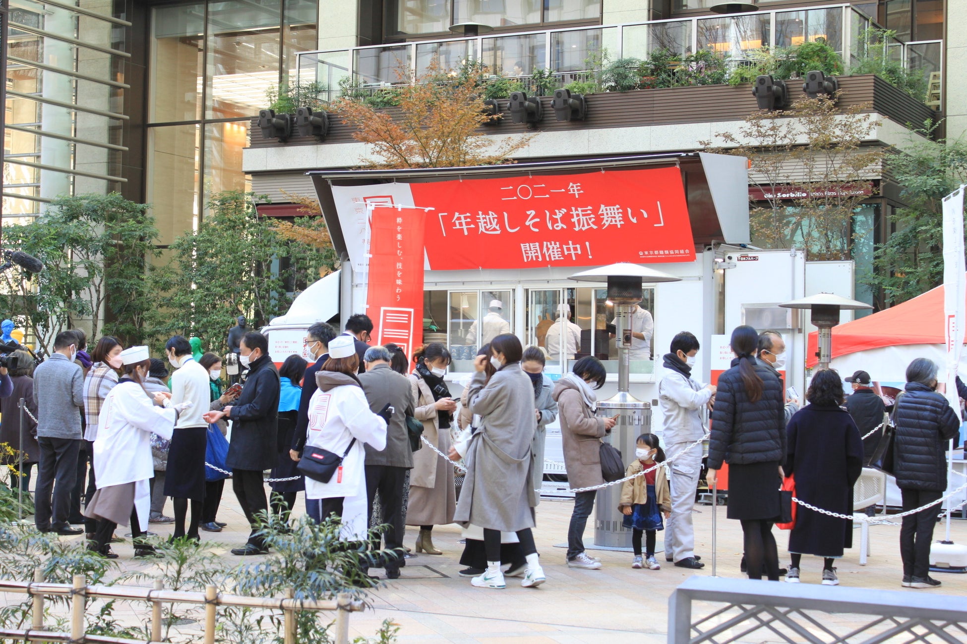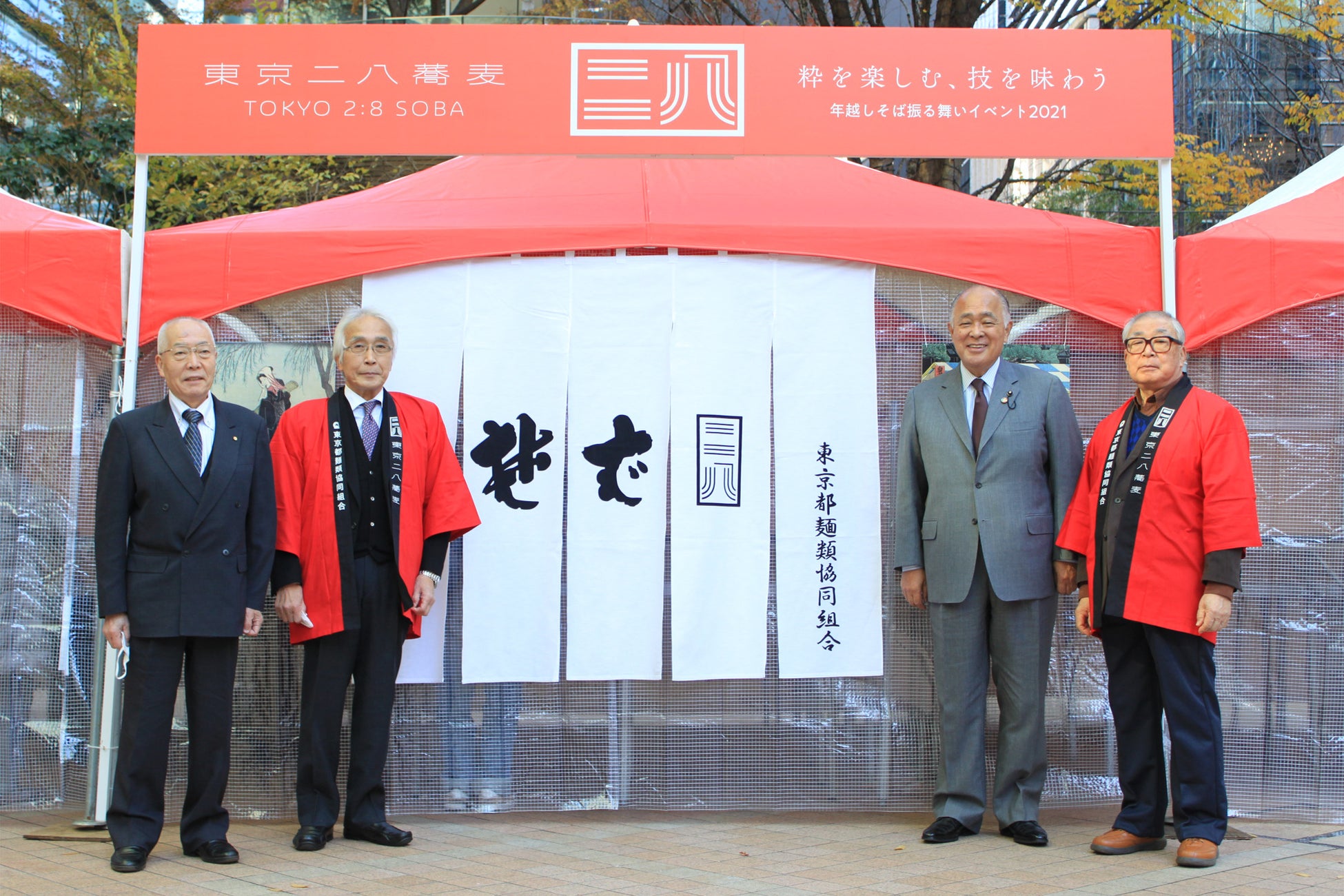東京都麺類協同組合(代表理事:田中 秀樹)は、江戸生まれ、東京育ちの名物「二八そば」を、現代そして未来へと継承すべく、2019年に「東京二八そば」ブランドを立ち上げ、この12月をもって二周年を迎えました。今年も大晦日まであと10日あまりとなる2021年12月22日(水)、日本橋コレド室町テラス広場にて、東京二八そばによる「年越しそば」の一般向け試食会を実施いたしました。
