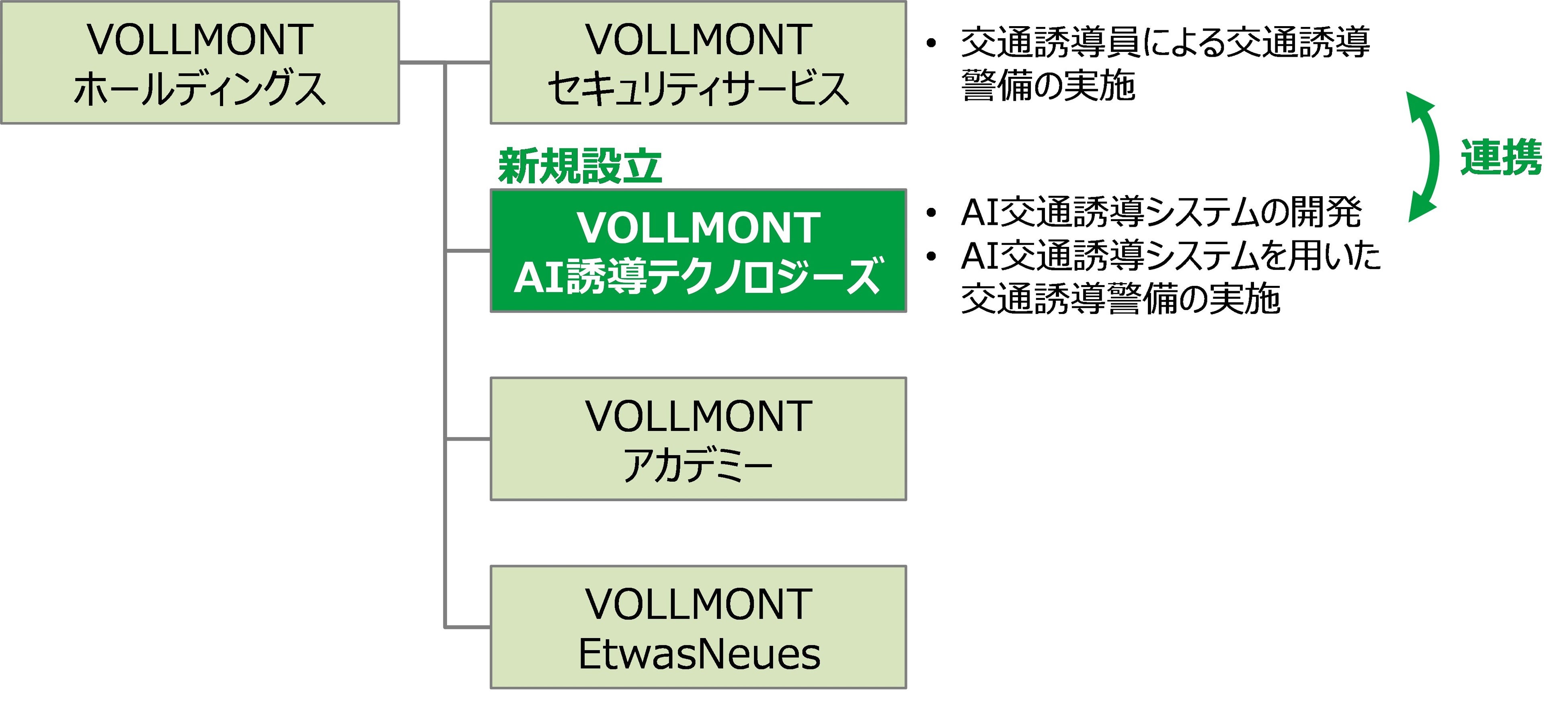 これまで、VOLLMONT ホールディングスとVOLLMONT セキュリティサービスを中心に行ってきたAI交通誘導システムの開発や現場での実証実験・運用などの機能を「VOLLMONT AI誘導テクノロジーズ」に集約することで、AI交通誘導システムの早期の社会実装を目指してまいります。