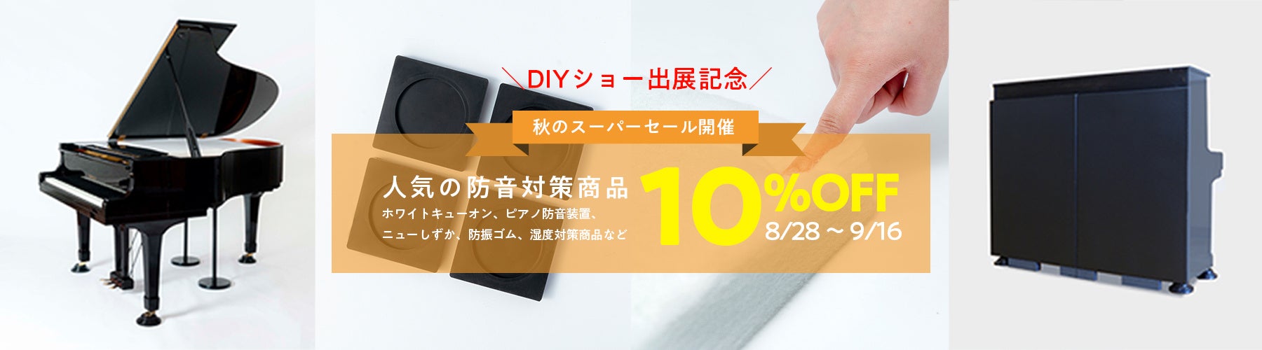 暑さが落ち着き秋の訪れを感じる9月は、新学期・引越し・転勤など生活が変化する季節で、毎年新しく防音をはじめる方が多い季節です。DIYショー出展を記念して、防音をはじめる方を応援するためにセールを開催いたします。