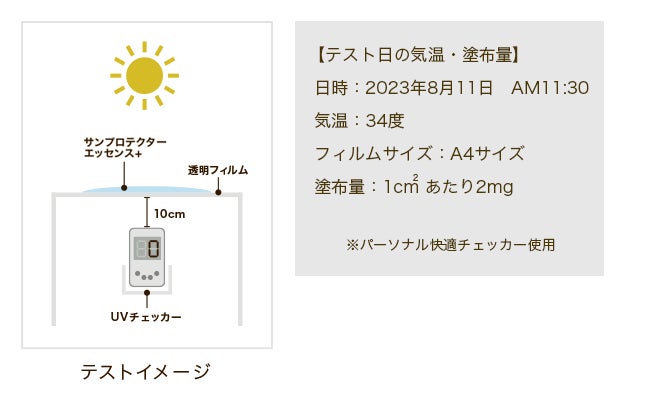化粧箱に表示されているSPF/PAを保証する量として、日本化粧品工業会が定めた量で行いました。テストの結果、4Bサンプロテクターエッセンス+が紫外線を正しく防いでいることを確認しております。