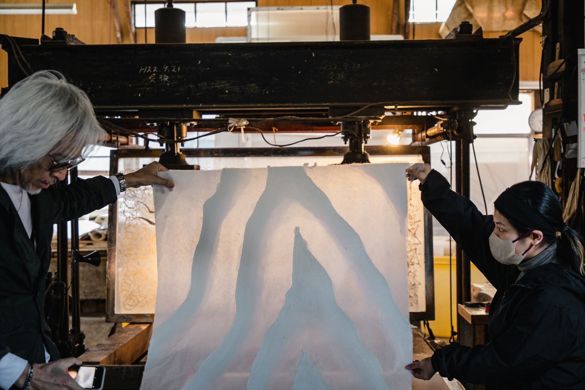 越前和紙の里と呼ばれるエリアには多くの工房が軒を連ね、それぞれ味わいのある和紙を生産しています。この地を訪れた建築家・芦沢さんが考える越前和紙の魅力について、また地域産業の活性を担う永田さんに和紙の今について伺います。