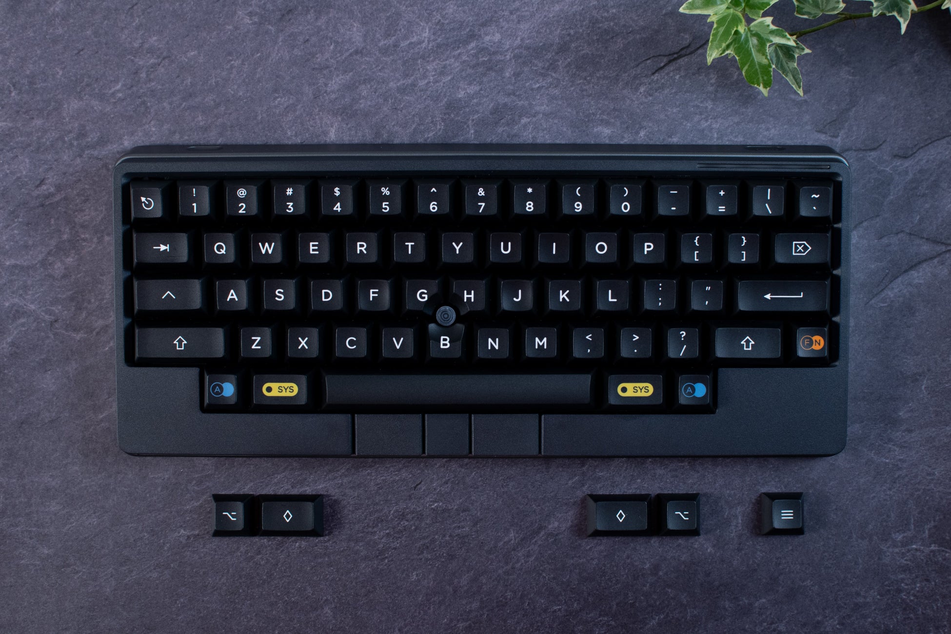 しかし、ポインティングスティックを搭載しているが故の「G/H/B」キーが特殊形状となっているほか、スペースバーの長さやスタビライザー位置が汎用品とは異なったサイズとなっているため、純正キーキャップセットを除いて、市販されているキーキャップセットが利用できない部分で互換性に課題がありました。