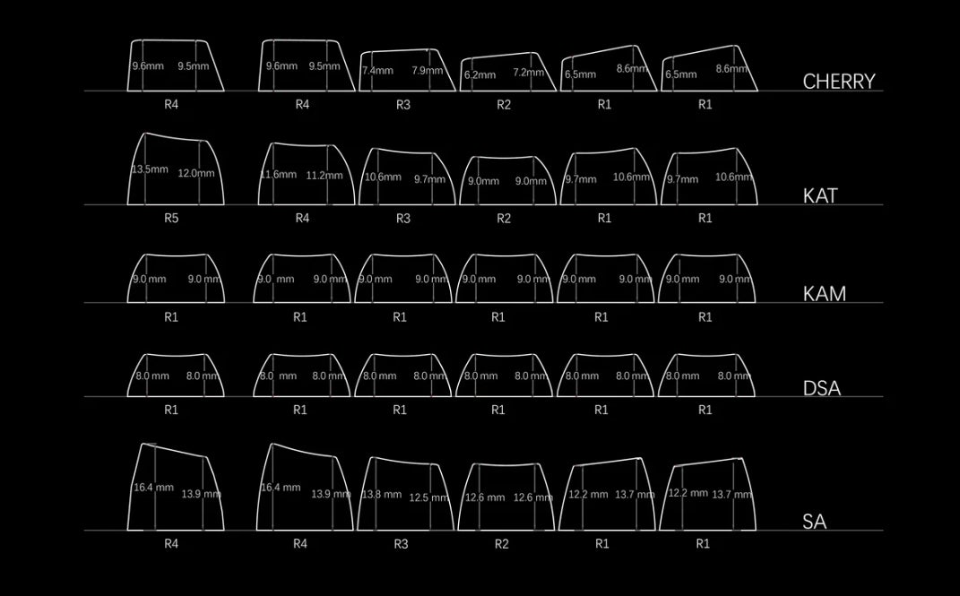 キープロファイルとは、キーキャップの3つの要素(側方傾斜・上面の形状・高さ)で構成されています。