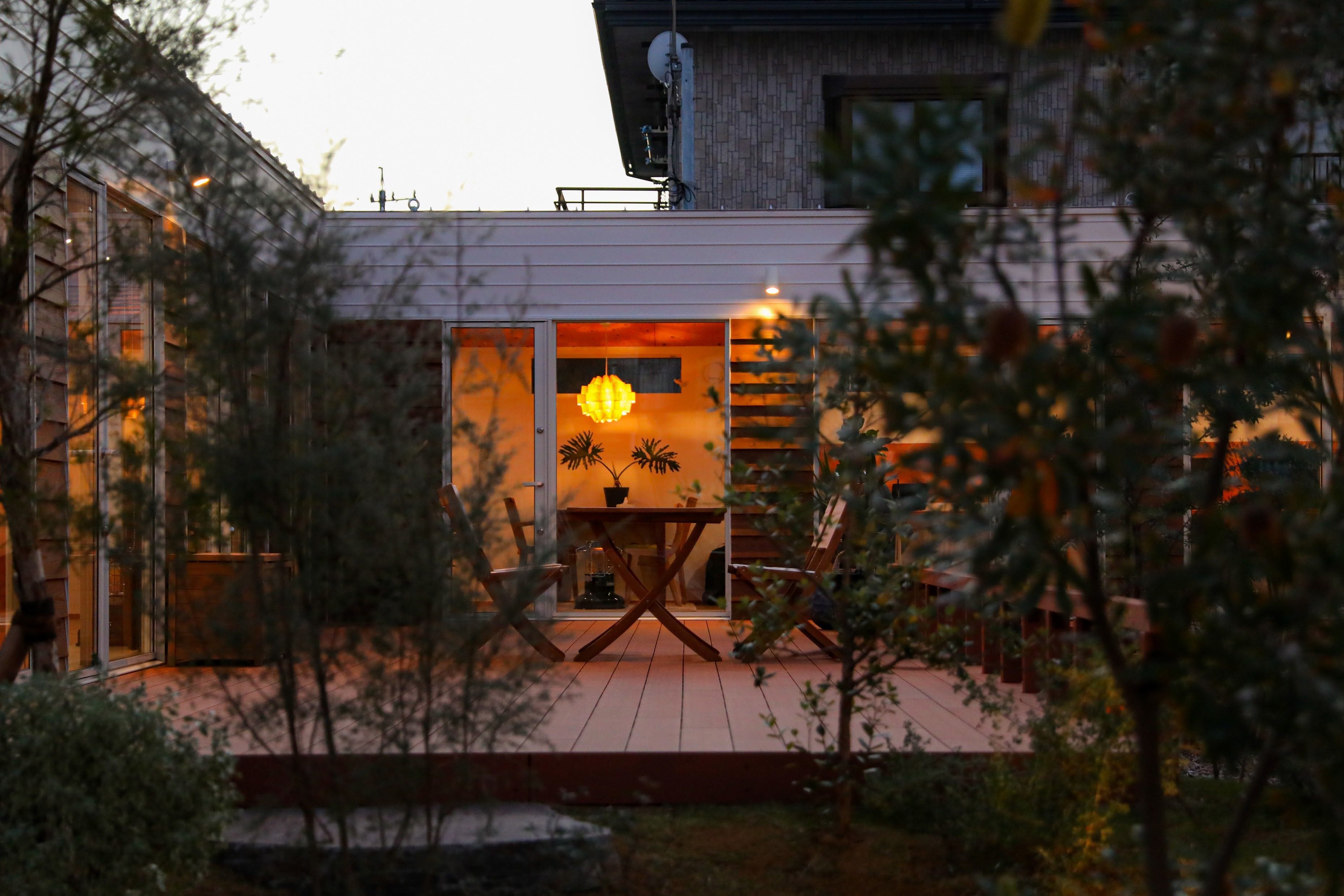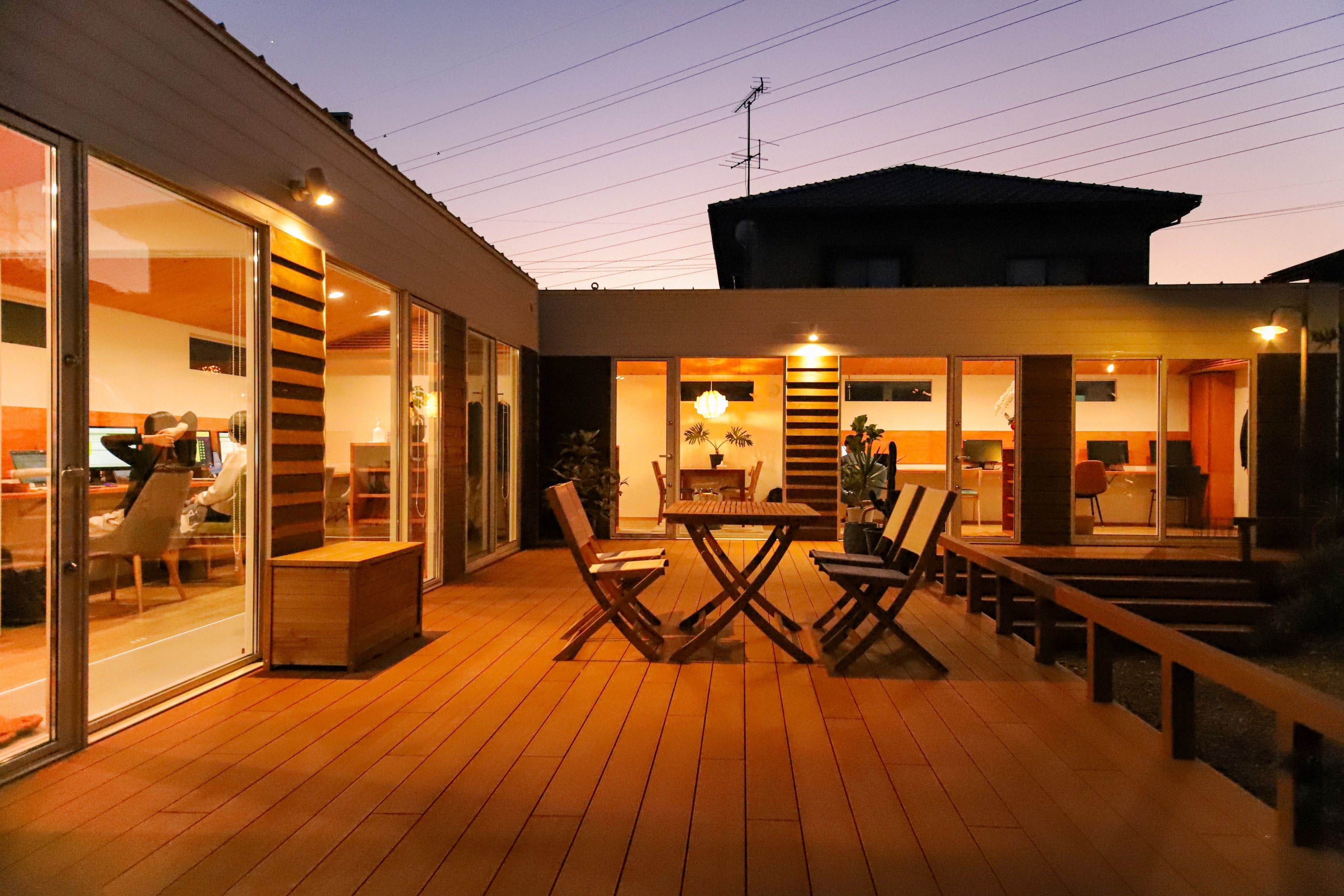 日が沈んでからも、開放感、マインドセット、リラックスをすぐに感じていただける雰囲気づくりを追求いたしました。照明色、デッキ色、屋外家具などの全ての調和から、温もりを感じる空間演出をしています。