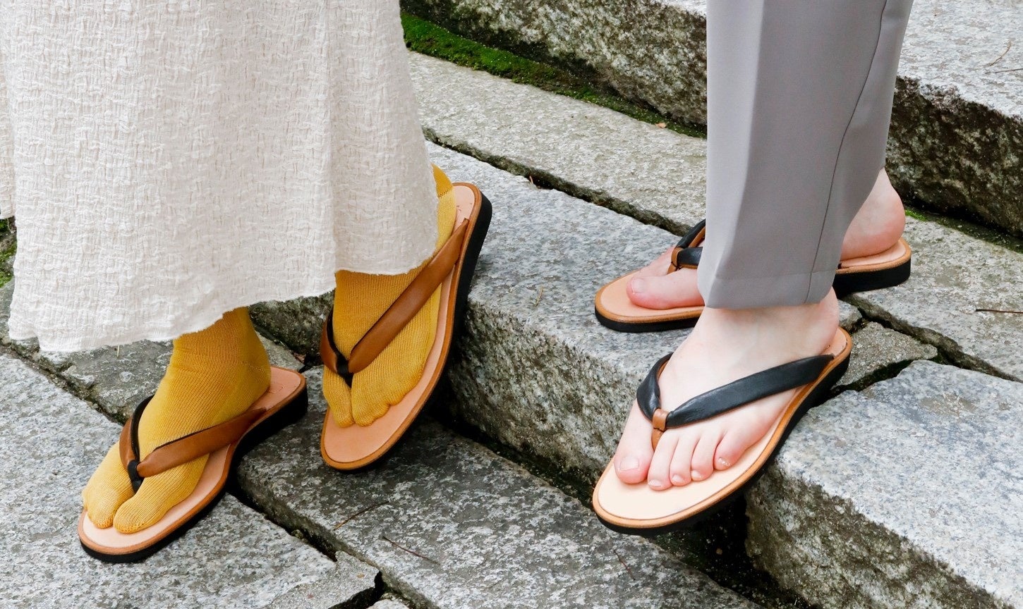 奈良に伝わる雪駄をモチーフにした雪駄サンダルなどサンダル二種類を発売。