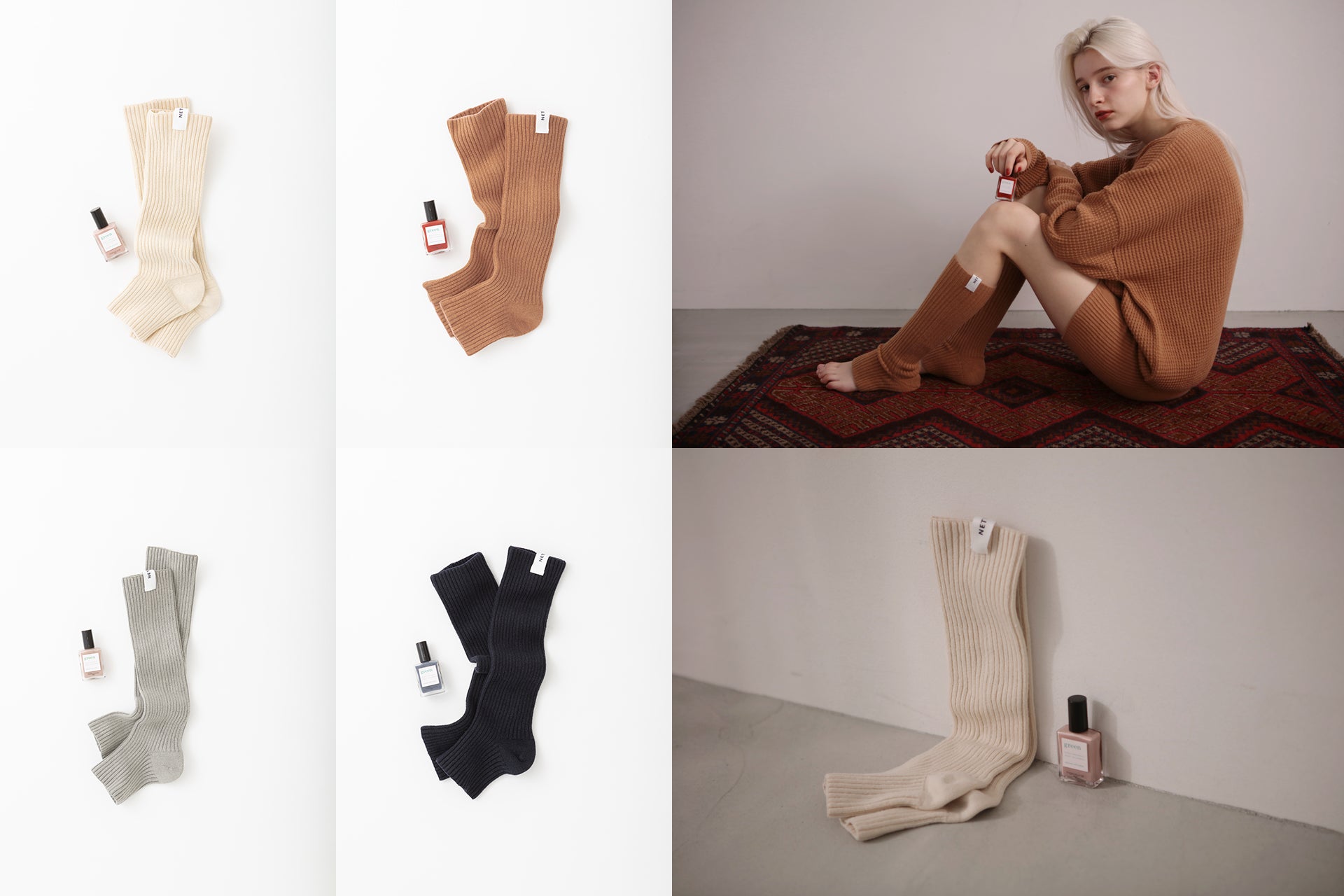 オールシーズン使える優しい履き心地のレッグウォーマーと爪に優しいネイルでおうち時間を楽しむスペシャルセット。足元の冷えをしっかりカバーし、温かくリラックスタイムを過ごしていただけます。レッグウォーマーは、ホールガーメント(無縫製)なので縫い目によるストレスフリーで就寝時にもお使いいただけます。静電気防止の機能も嬉しいポイント。健康的な皮膚の保湿やバリア機能をもつセラミドを繊維に含ませることで肌に優しいタッチで乾燥しやすいこれからの時期にうるおいを与えます。
