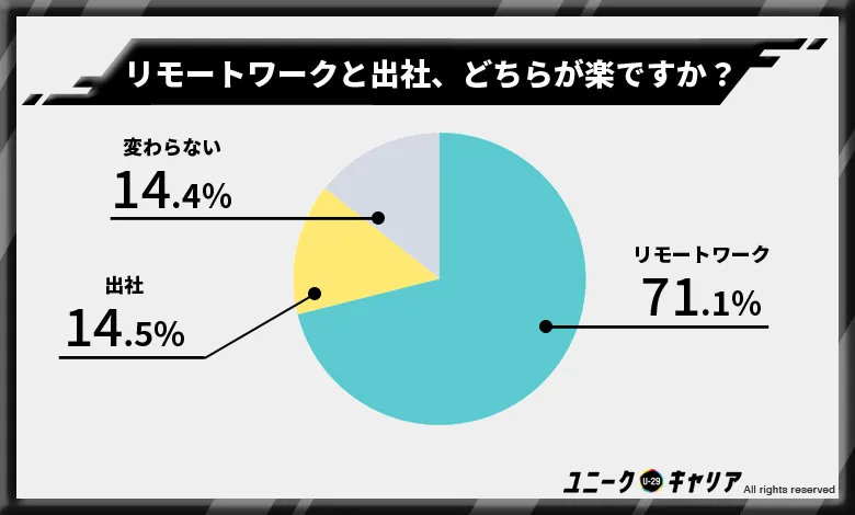 ・リモートワークのほうが楽と感じる人は71%