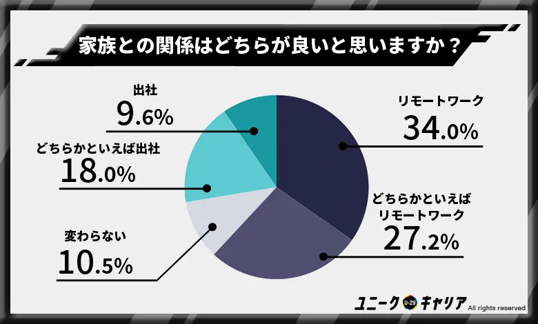 家庭を持っている人でもリモートワークのほうが楽と感じる人は7割