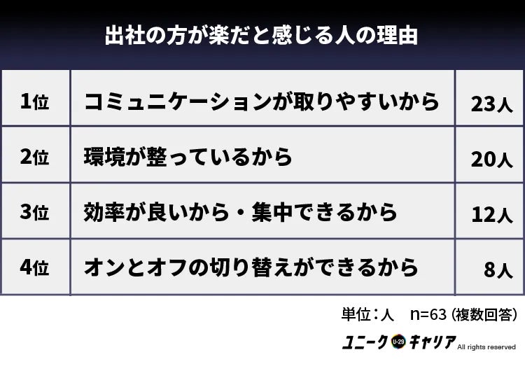 出社の方が楽だと感じる人の理由ランキング