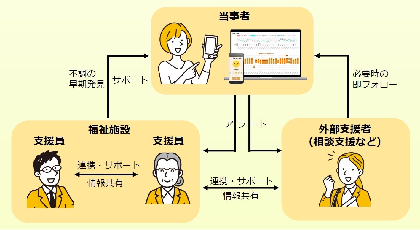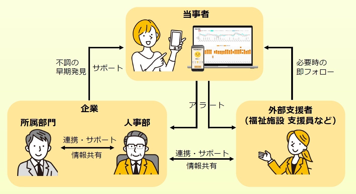 当社はこれまで、体調やメンタルの状態を可視化し、障害者の就労や職場定着において、当事者・支援者・管理者それぞれの立場を支援する「キモチプラス」を提供してまいりました。