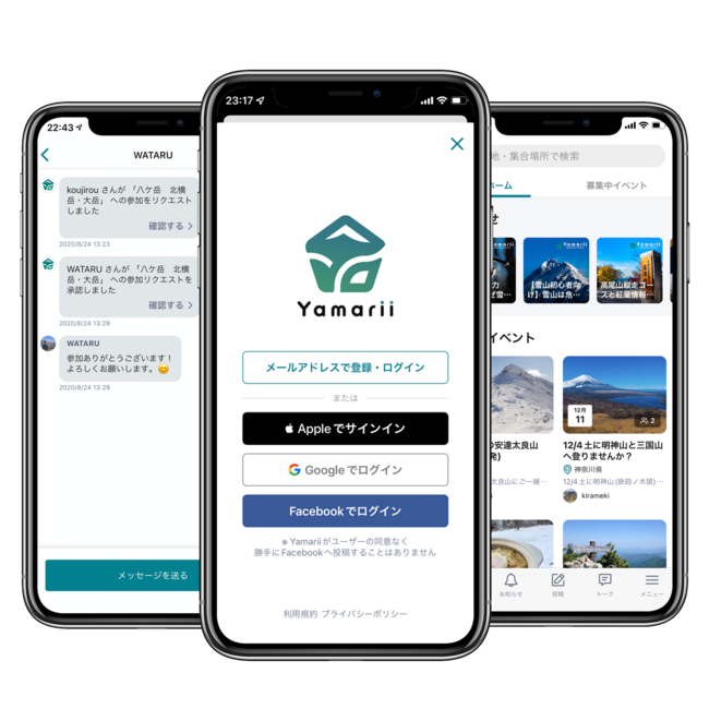 登山仲間のマッチングサービス Yamarii(ヤマリー)Web、Android:https://www.yamarii.com/