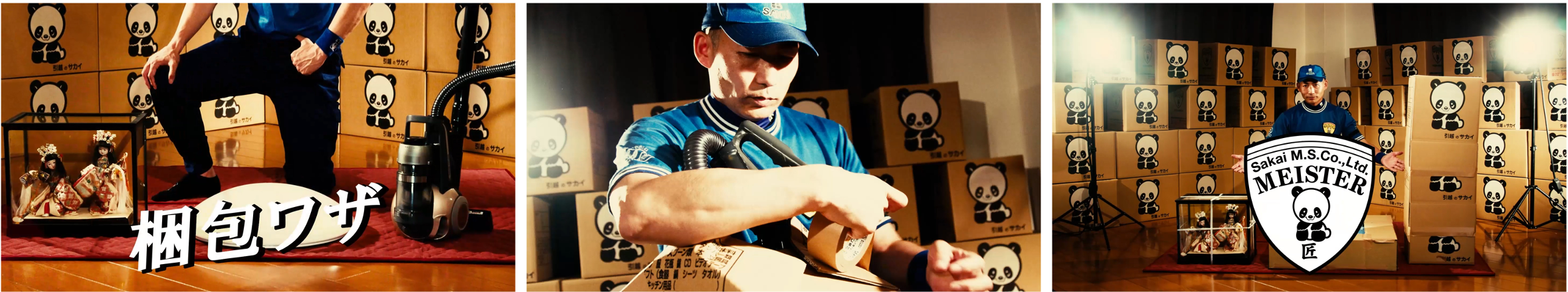 オリジナルCMソングでお馴染みとなった本シリーズ。先輩・板橋駿谷さん、桃月なしこさん、まごころパンダくんの3人が引越のプロ「マイスター」を目指して奮闘する本編に加え、「マイスター」による引越スゴ技が堪能できるWEB動画「サカイマイスター スゴ技ムービー」も同時公開いたします。