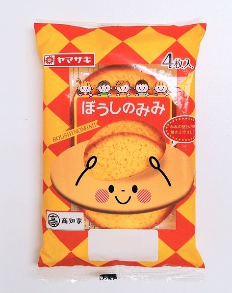 高知のご当地パンである「ぼうしパン」、真ん中の丸い部分はふわふわのパンで、ツバの部分のカステラ生地が、サクッとして口当たりで抜群に美味しい!「ぼうしのみみ」はそのツバの部分だけを選り取りして製品化したもの。帽子ならツバだけど、パンなら「みみ」ですよね。