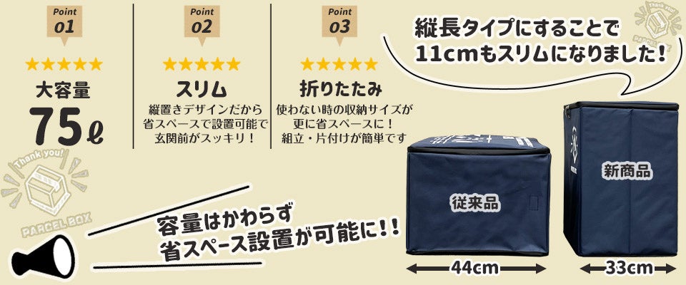本宅配ボックスシリーズは『大容量75L』を『折りたたんで収納』できる事が最大の魅力!