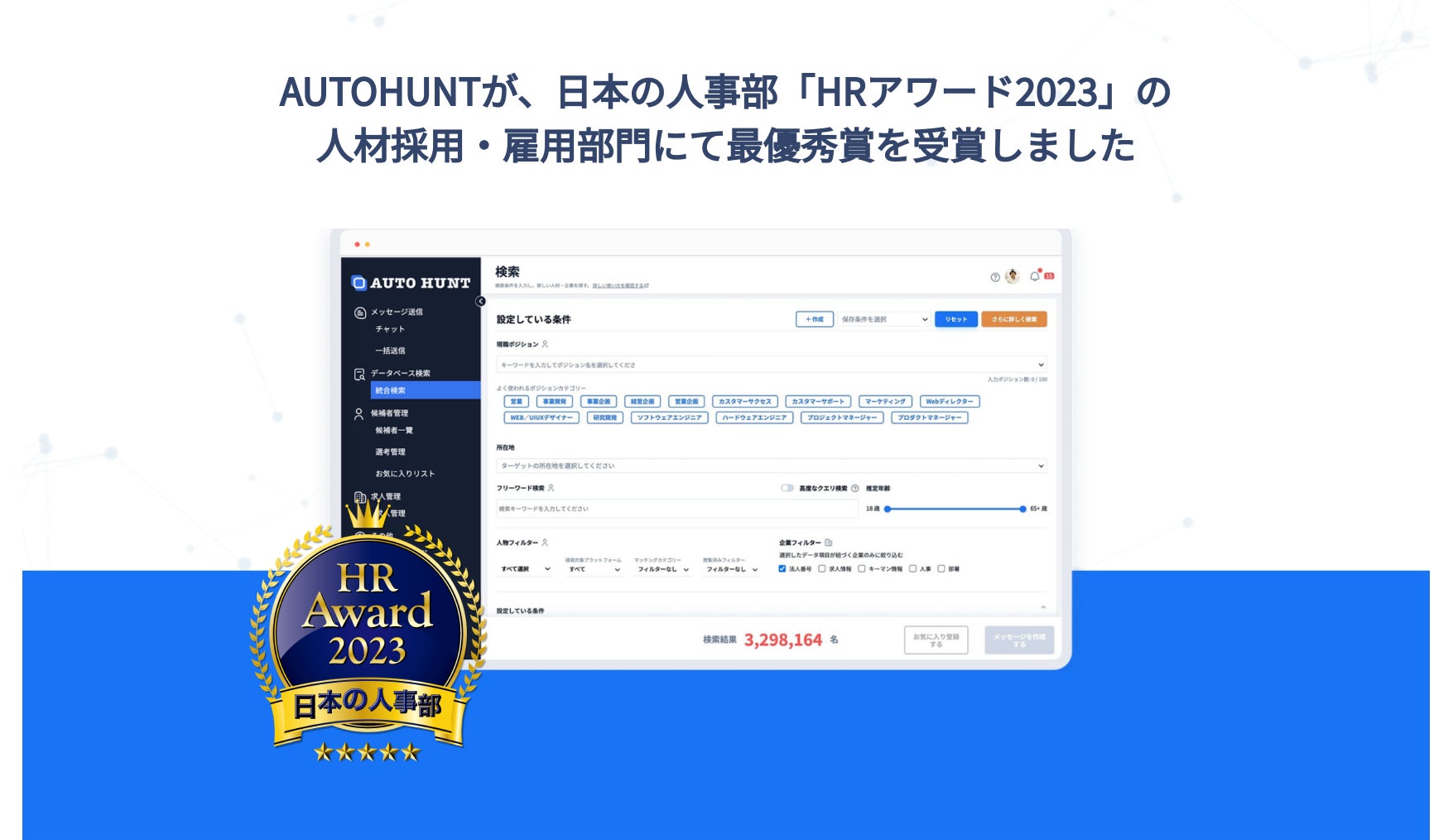 XAION DATAの「AUTOHUNT」が、日本の人事部「HRアワード2023」プロフェッショナル人材採用・雇用部門 最優秀賞を受賞