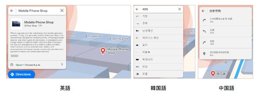 株式会社ゼンリンデータコム(所在地:東京都港区芝浦、代表取締役社長:清水 辰彦、以下:ゼンリンデータコム)が提供する屋内デジタルマップサービス「いつもNAVI インドアマップ powered by Mappedin(マップトイン)」が、この度バージョンアップしました。本サービスは、ショッピングモールなどの商業施設、駅・空港といった公共交通施設、病院などを管理・運営されるお客様向けの屋内デジタルマップサービスです。今回のバージョンアップで多言語対応を開始し、従来からの日本語に加え新たに英語・中国語(繫体・簡体)・韓国語での利用が可能になりました。さらに検索数上位店舗のトップ画面表示・店舗のイベント/クーポン情報表示・店舗画像の表示・ルート検索での複数経由地設定機能という4つの新機能の提供を開始しました。また、バージョンアップに伴い、ゼンリンデータコムの販売名称を「Mappedin」から「いつもNAVI インドアマップ powered by Mappedin」に変更しました。