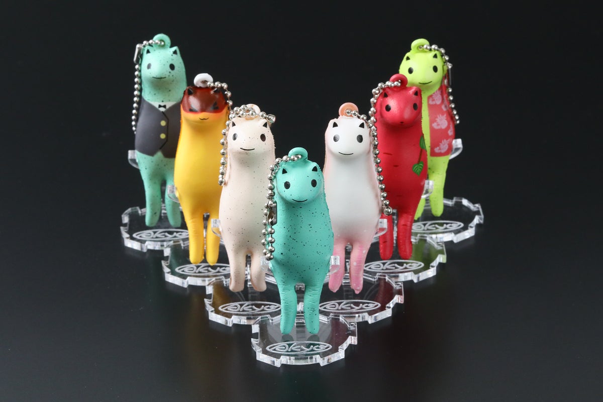 キーチェーンマスコットである当商品を自立させ飾ることが出来る、専用のロゴ入りアクリルスタンドを新たに販売します。