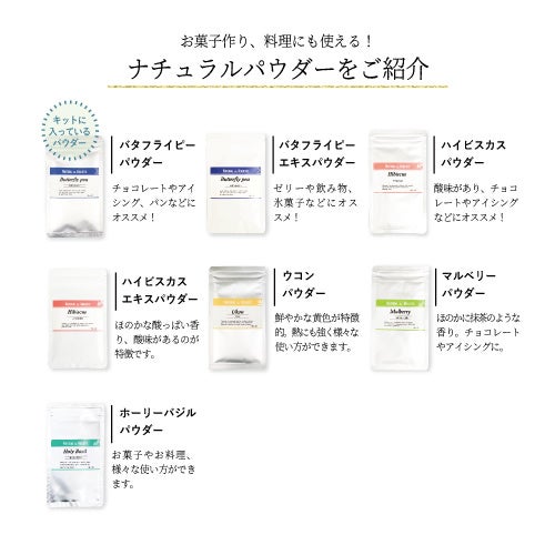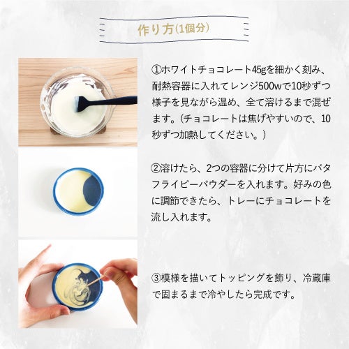 (※キットにはチョコレートは含まれません。/キットに同梱のパウダーはバタフライピーパウダーのみとなります。他のパウダーについては別途アグリ生活にてお買い求めください。)