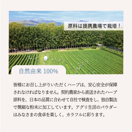 アグリ生活のナチュラルパウダーは、こだわりを持って作った植物由来100%の食品天然パウダー。