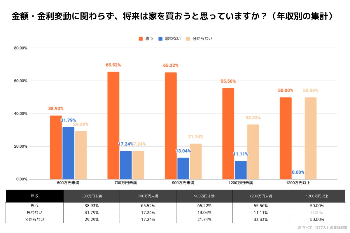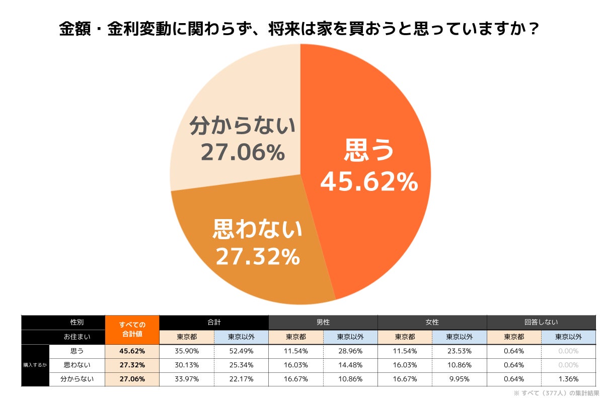 金額・金利変動に関わらず、将来は家を買おうと思っていますか?