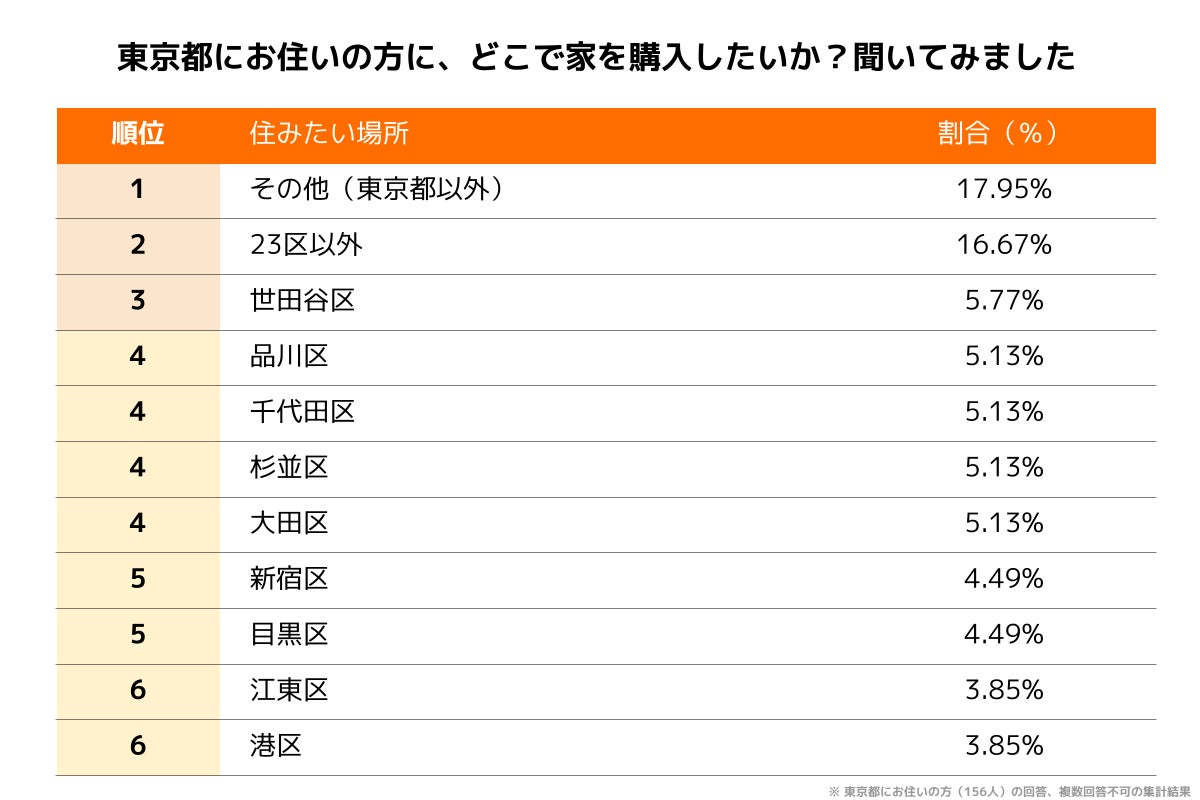 【おまけ】東京都にお住いの方に、どこで家を購入したいか?聞いてみました