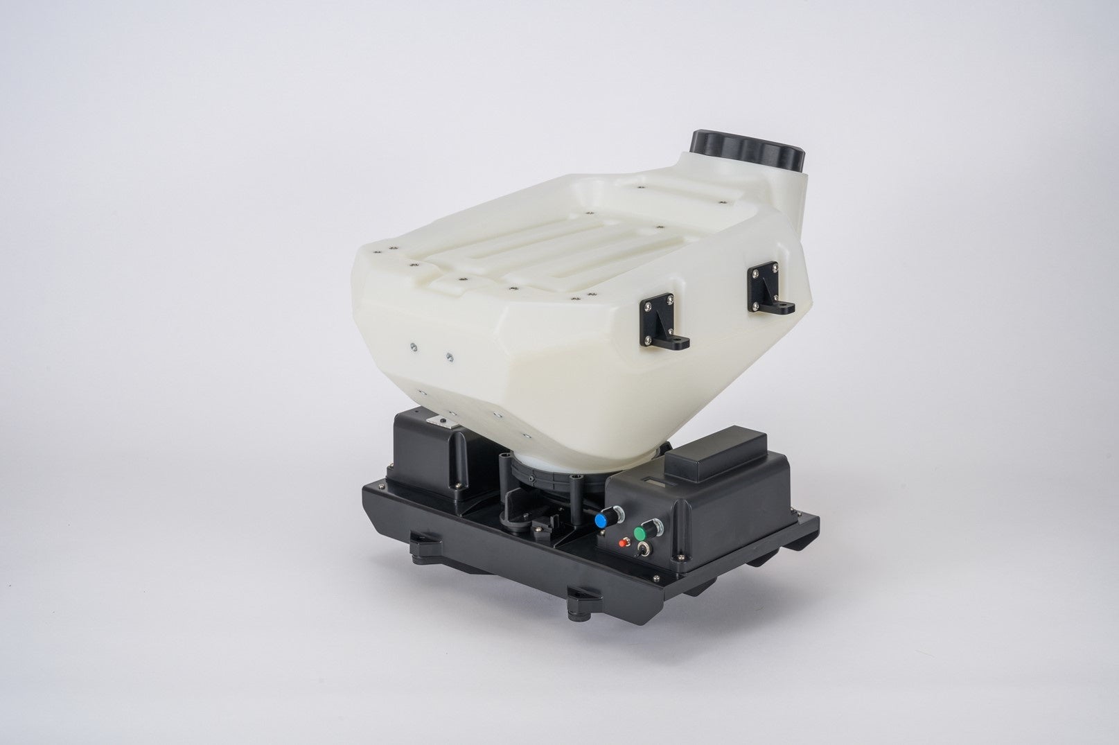 一つのユニットで、肥料・薬剤・種子の粒剤散布を目指す。