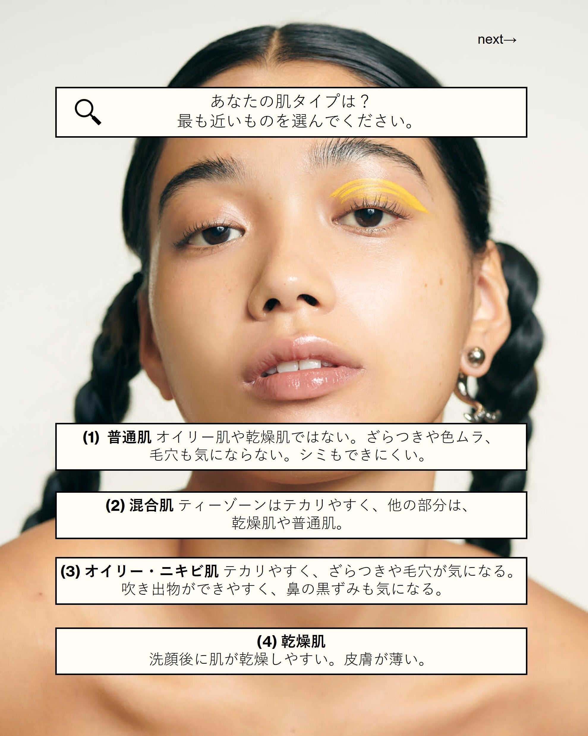 STEP 1: 4つの肌タイプの中から当てはまるものを選択。