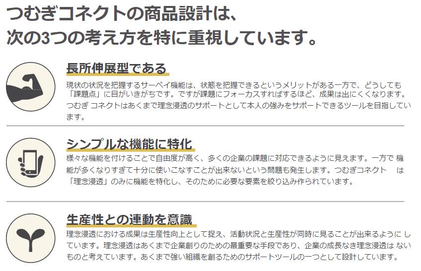 つむぎコネクトは『理念浸透を実現する』ということに特化しているため、