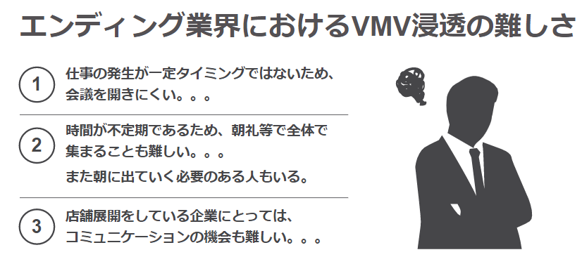 理念の浸透は必要不可欠であるにもかかわらず、葬祭業ではなかなか実現することが難しい事情がありました。
