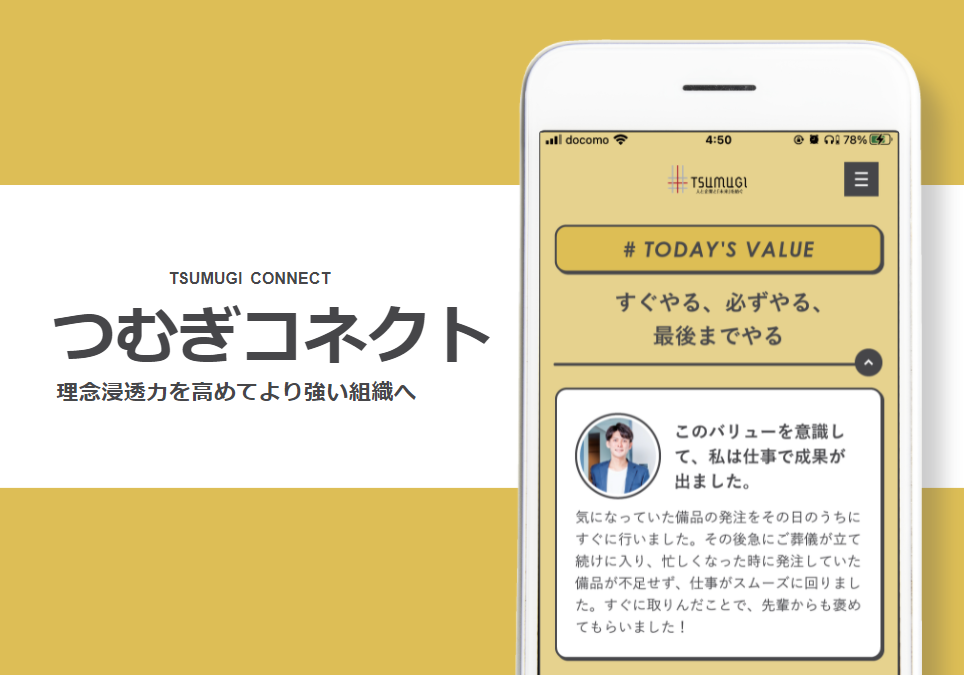 従業員が毎日使用することで自然に理念の理解を深め、体現できる【つむぎコネクト】がいよいよリリース!