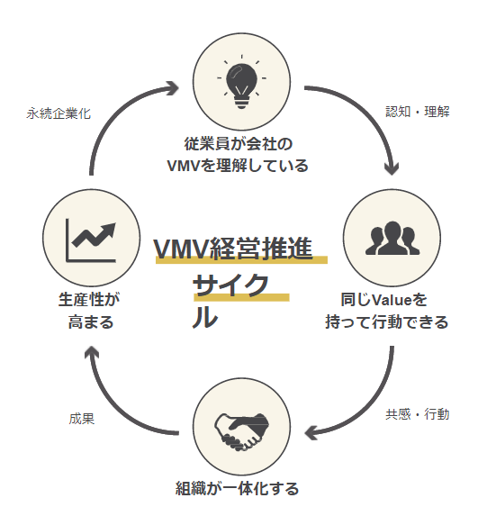 下図のようにVMV(ミッション・ビジョン・バリュー)が社員に浸透していると