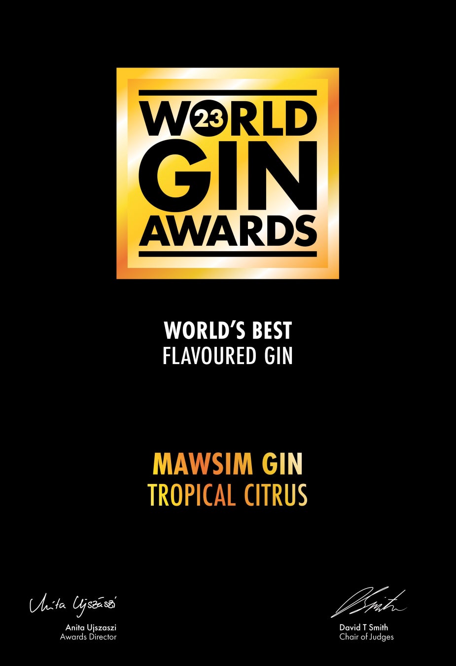 本品評会で「MAWSIM GIN TROPICAL CITRUS」は20銘柄の国別最高賞の中から最終審査が⾏われ、世界⼀である「WORLD'S BEST」を受賞しました。 2014年から開催される本品評会にて、アジア圏内(⽇本含む)のジンで「WORLD'S BEST」を受賞するのは、全カテゴリーを含め、初の快挙となります。