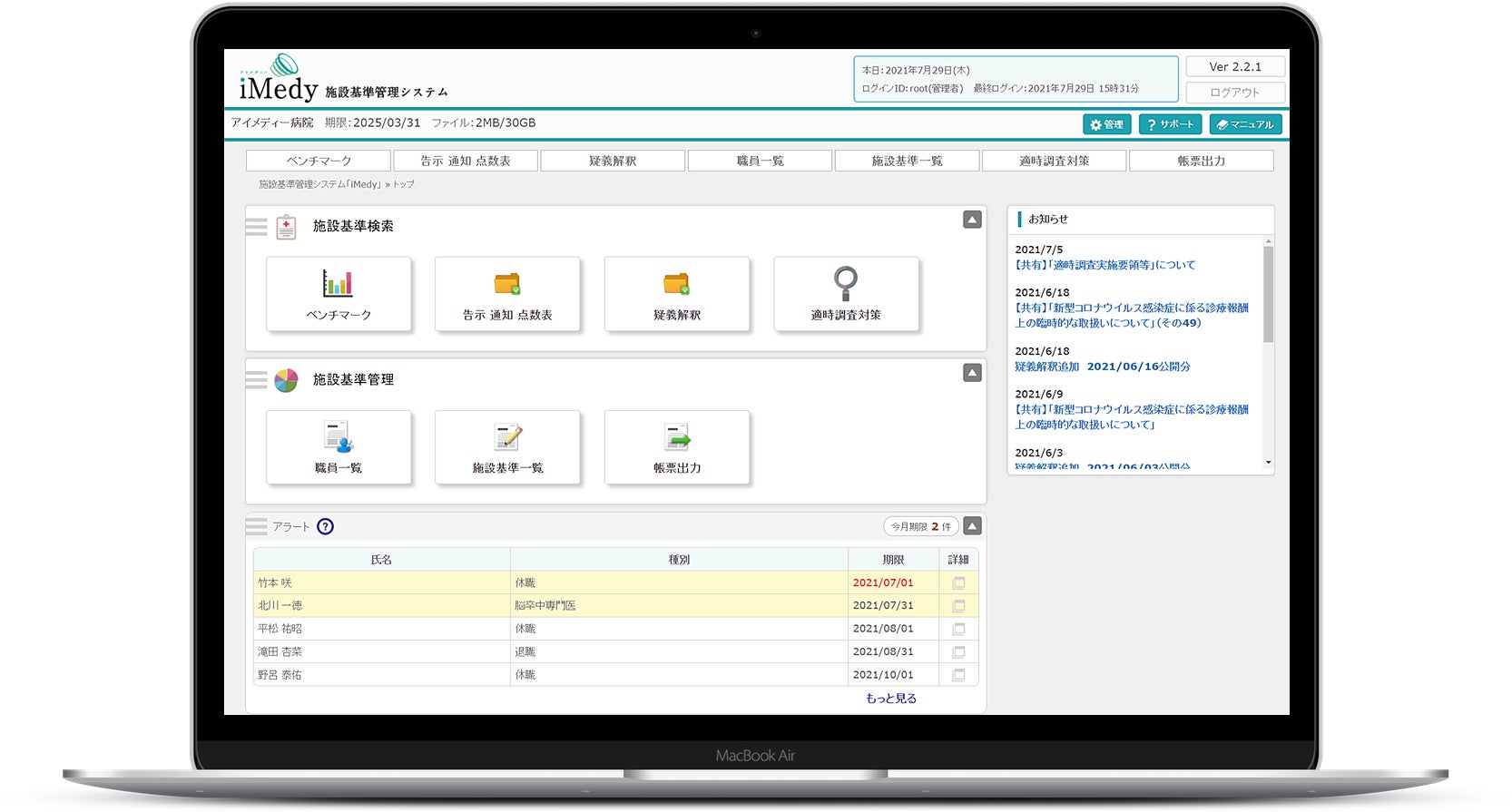 施設基準管理システム「iMedy」、改定情報公開から4営業日で2022年度診療報酬改定対応のアップデート完了
