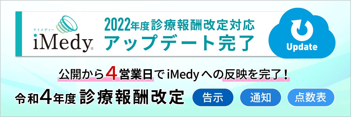 iMedy株式会社(本社:福岡県福岡市、代表取締役:只友 裕也)は、2022年度診療報酬改定に伴う施設基準管理システム「iMedy(アイメディ)」(以下 iMedy)のアップデートを3月10日に完了しました。