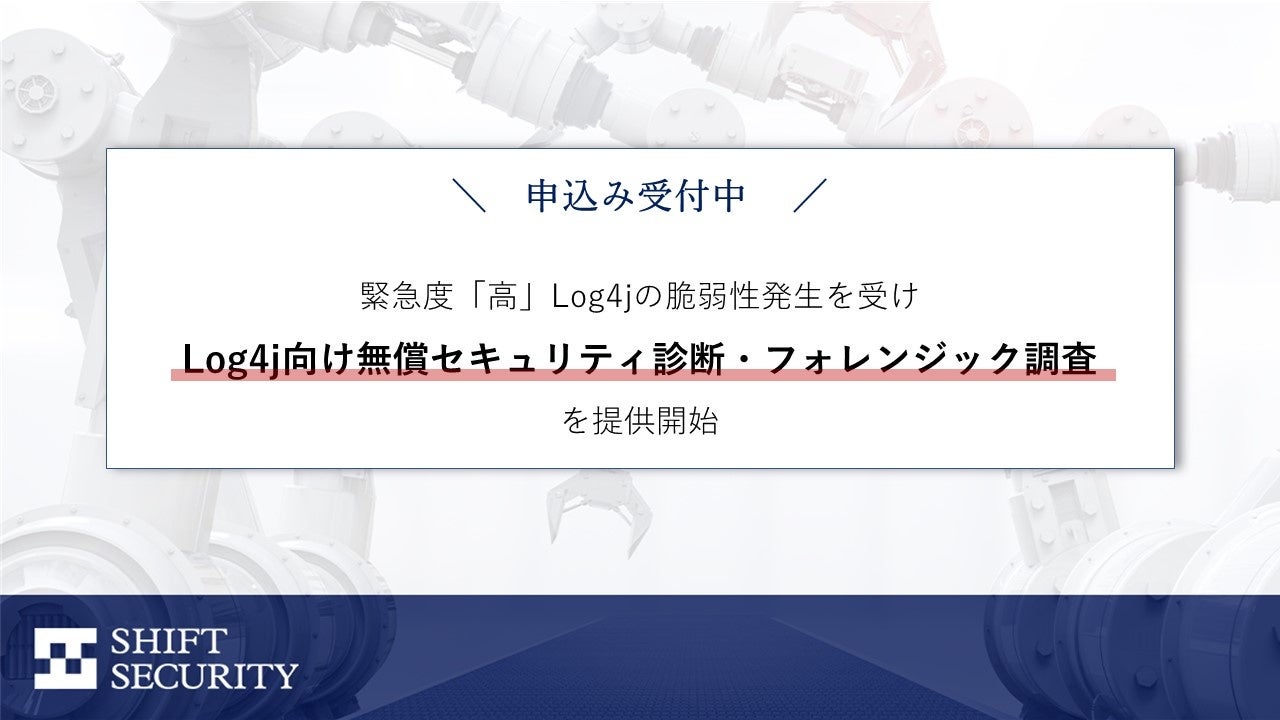 【緊急度「⾼」Log4jの脆弱性発生を受け】SHIFT SECURITYは『Log4j向け無償セキュリティ診断・フォレンジック調査』の提供を開始。