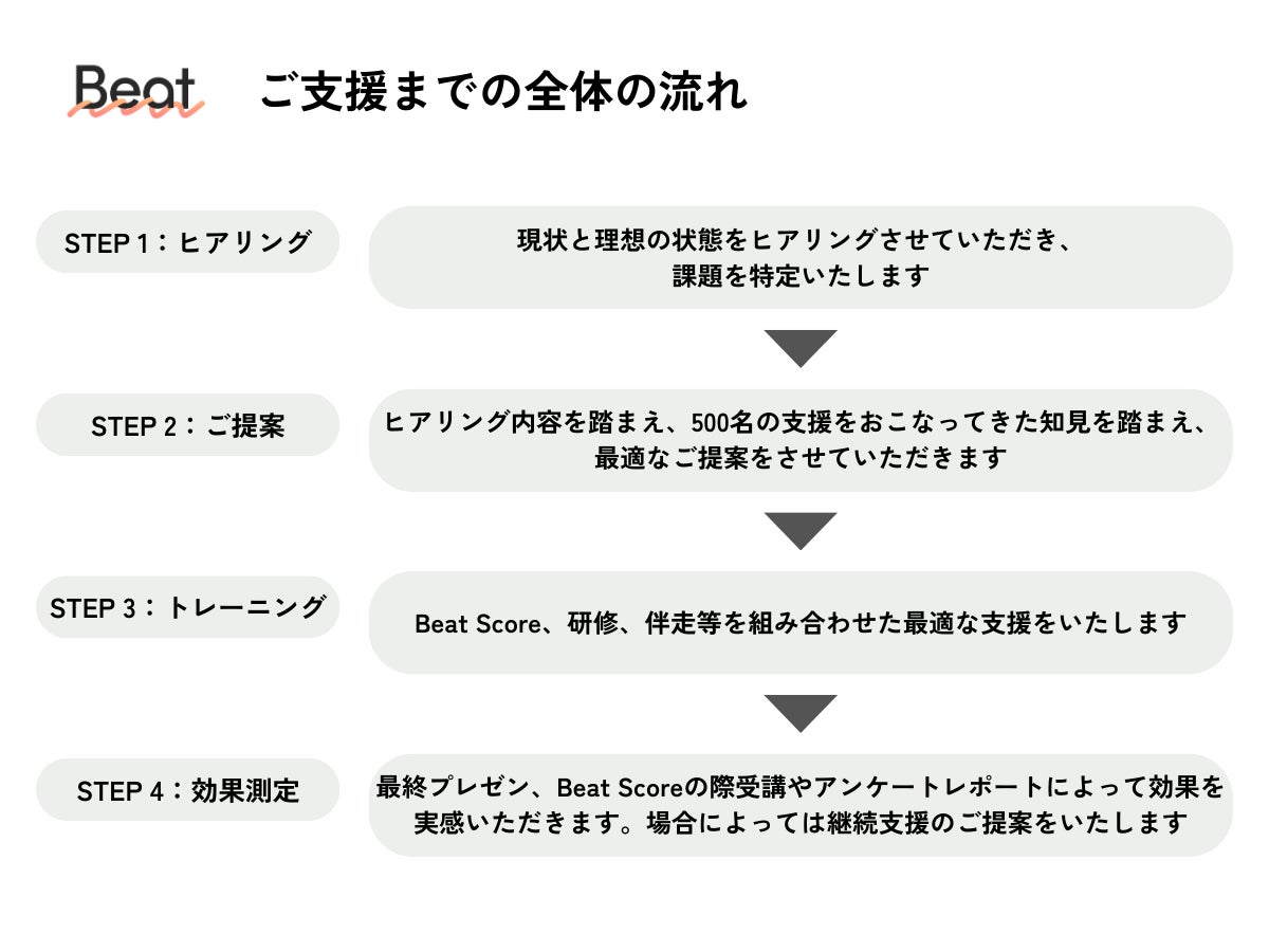 そこで作り上げたのが、この働き方トレーニングプログラムBeatです。今回は法人向けにオーダーメイドで自律を促すためのプログラムを提供いたします。