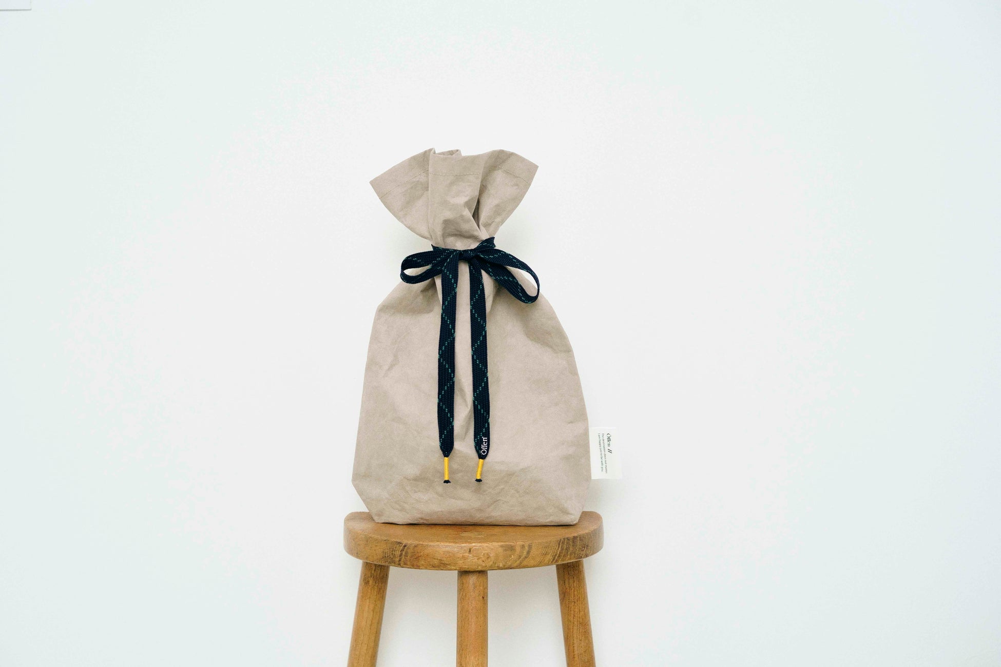 オッフェン(Öffen)は靴箱がありません。その代わりに、リユースを目的としたペーパーバッグを作りました。水で洗えるぐらい丈夫な再生紙の袋に入れてお渡しさせて頂いています。