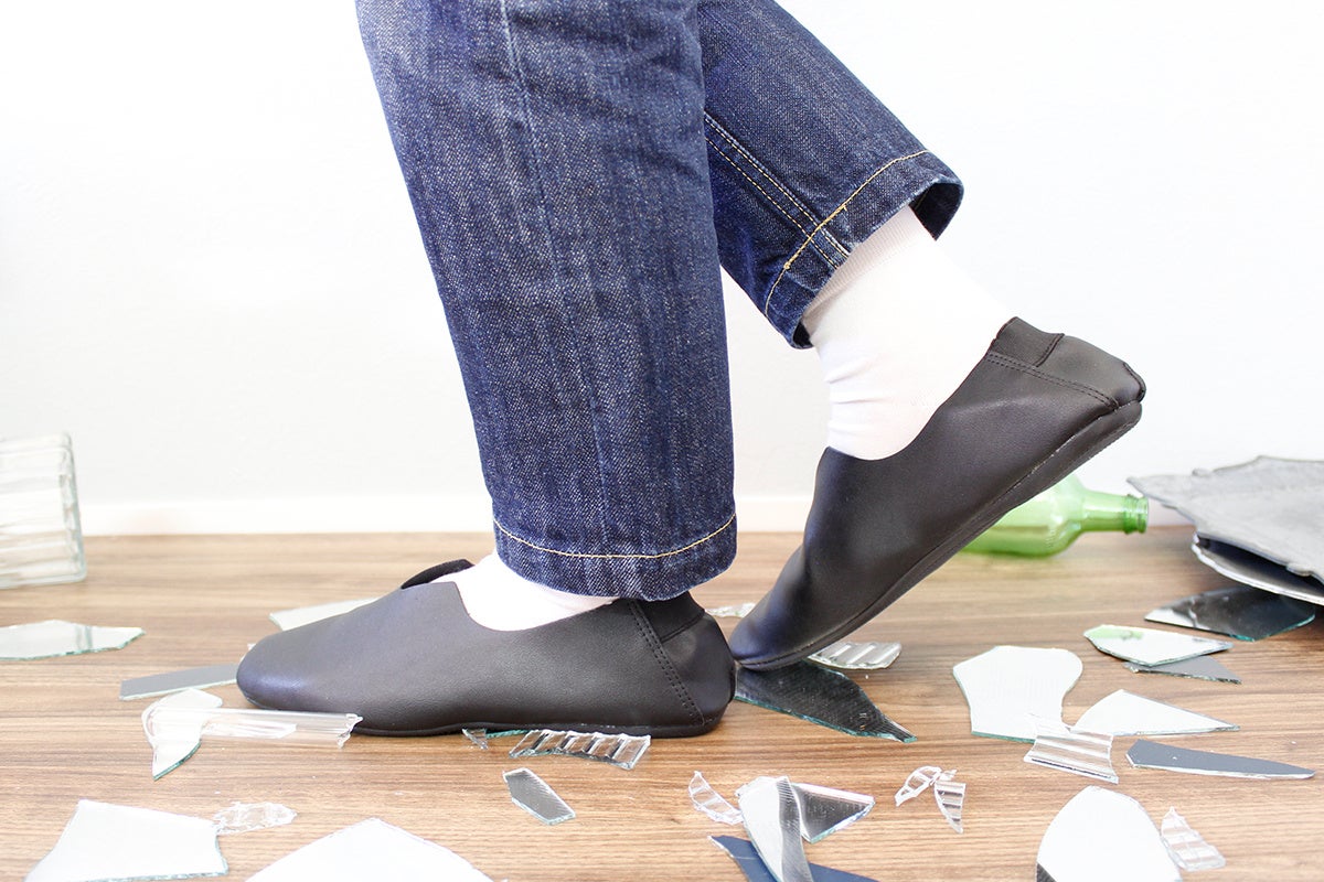 ルッツプラスを履いていればガラスの破片が散らばった上を歩いても貫通することが無いので、安全に行動することが出来ます。またお片付けの際にも活躍します。
