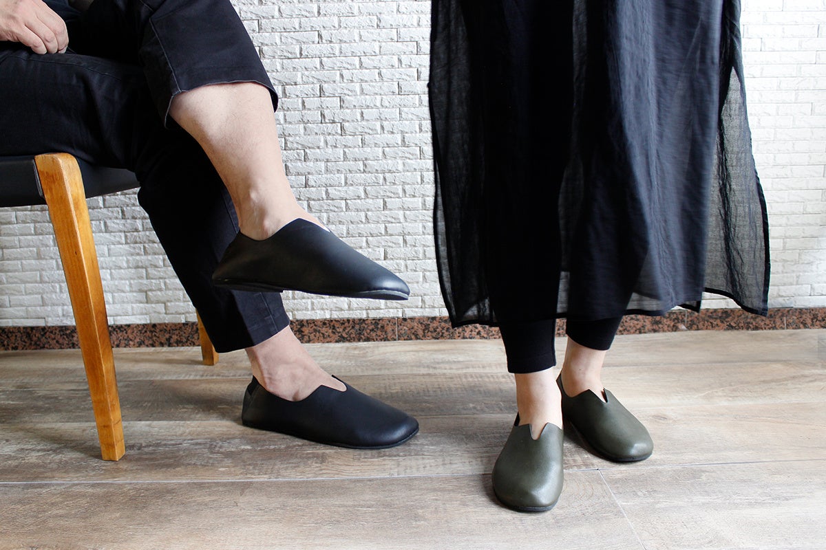 ・おしゃれな見た目 ・ポーチ付きで携帯できる ・バブーシュでゆったり履ける |