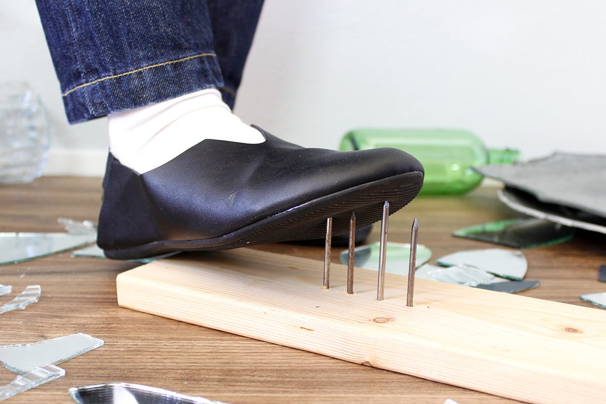 釘を踏んづけてもインソールがしっかり足を守ってくれます。恐る恐る歩く必要なし!