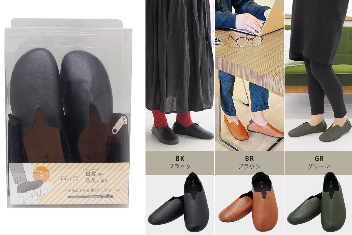 明日1/16(木)新発売!万が一の時はそのまま外に避難できるスリッパ。ガラスの破片や釘があっても貫通しない防弾ベストと同じ素材のインソールが入った「ルッツプラス」が発売されます。