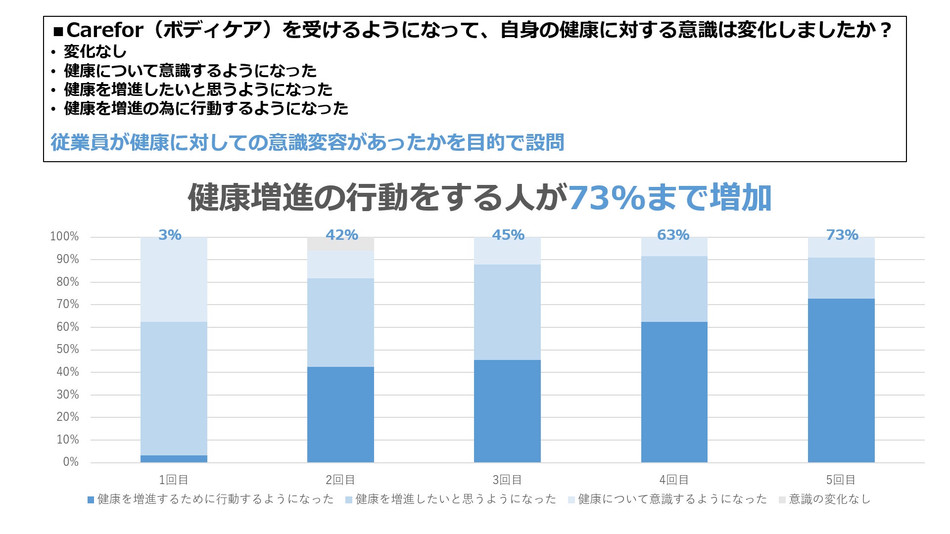 ・定期的なボディケアを通じて、自身の健康への意識変容が全体の73%までに増加