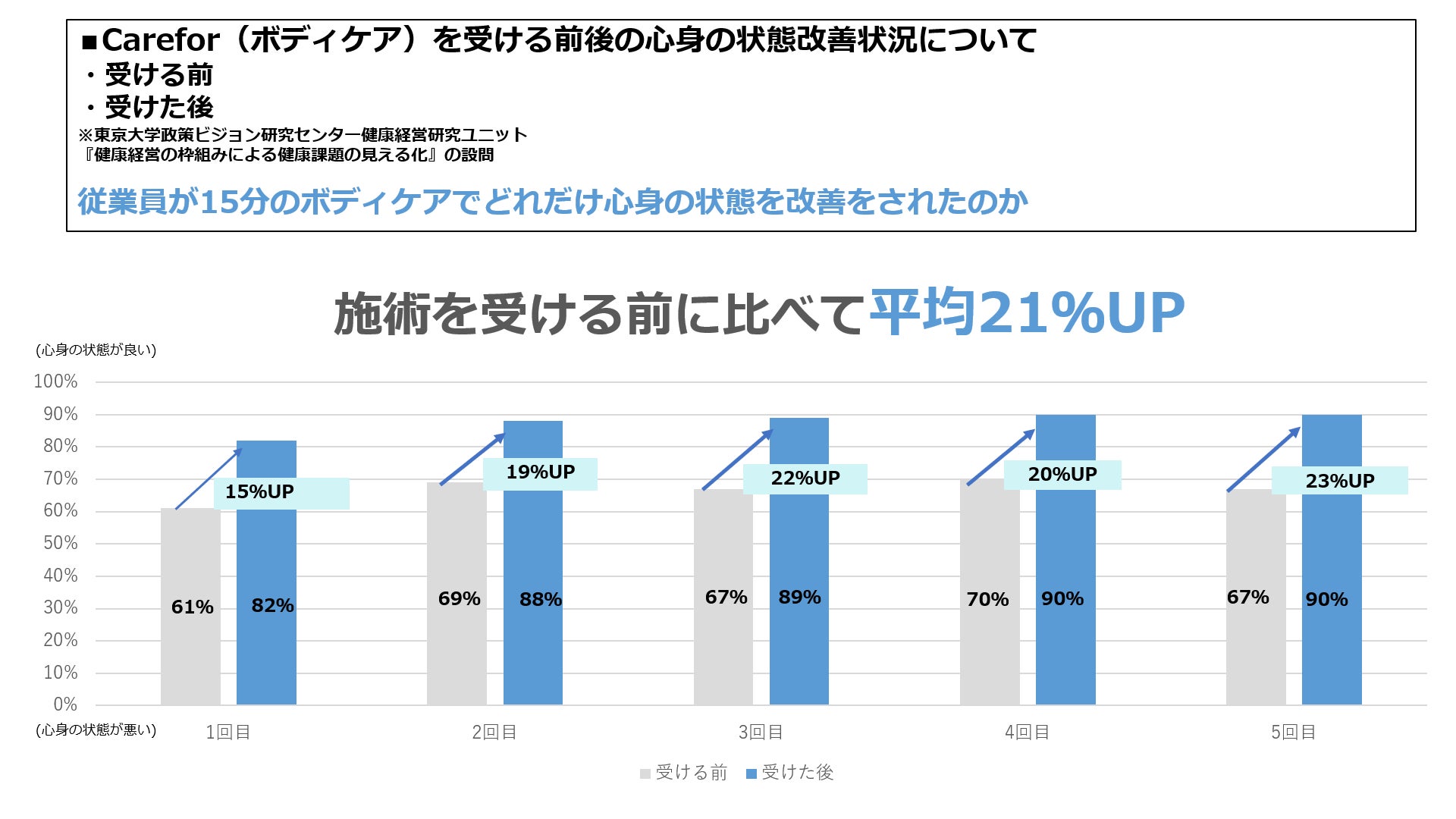 ・Careforを受けて前後の心身の状態が平均21%上昇