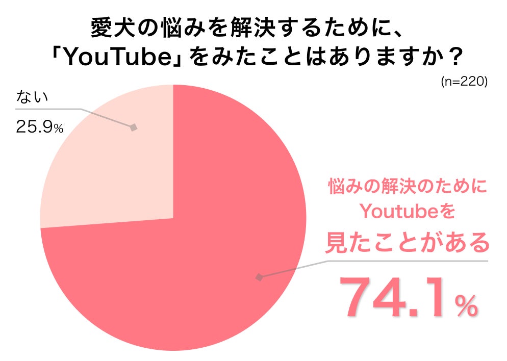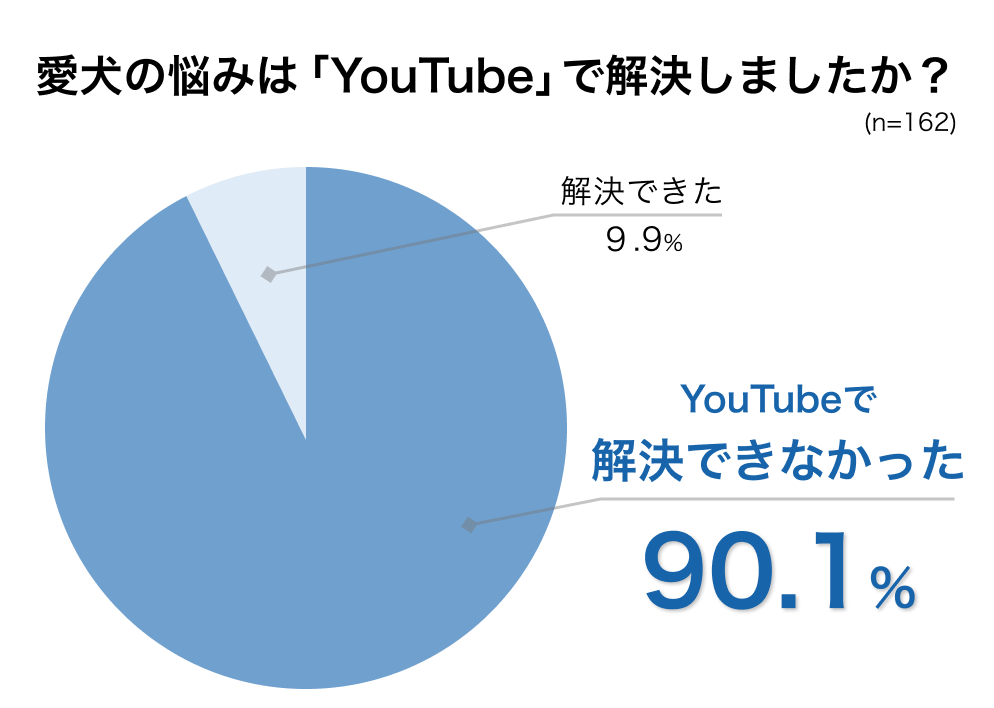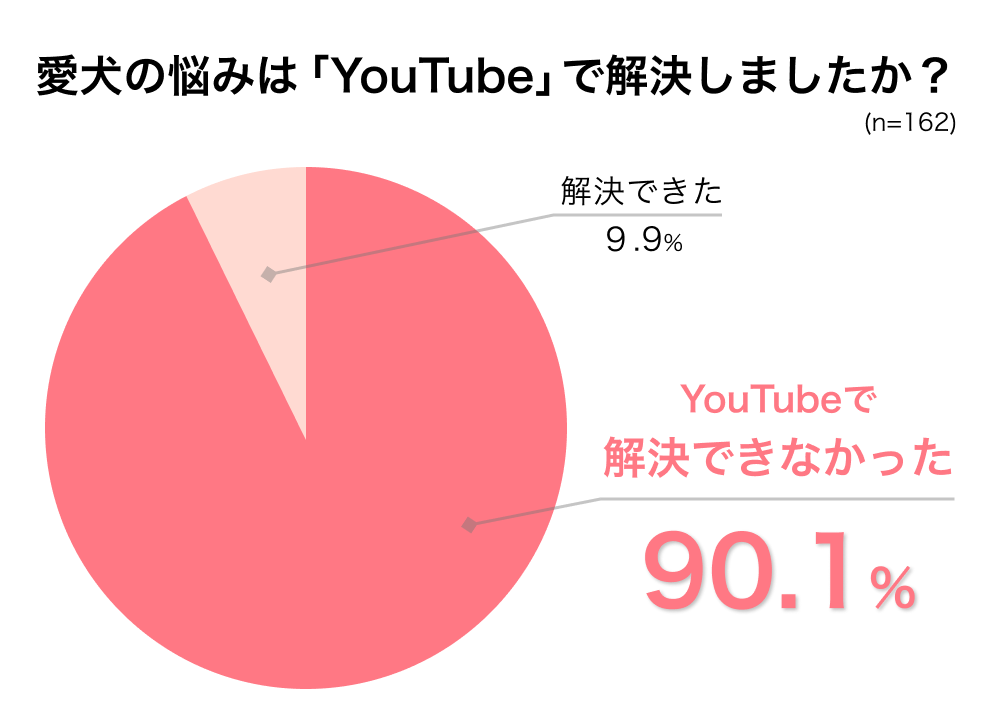 愛犬との生活の中における悩みは、知り合いへの相談に加えて、最近ではYouTube動画の利用が増えてきていますが、愛犬に合った解決方法を見付けることが出来ず、悩みの解決策としては不十分だと感じられている方が多い結果となりました。