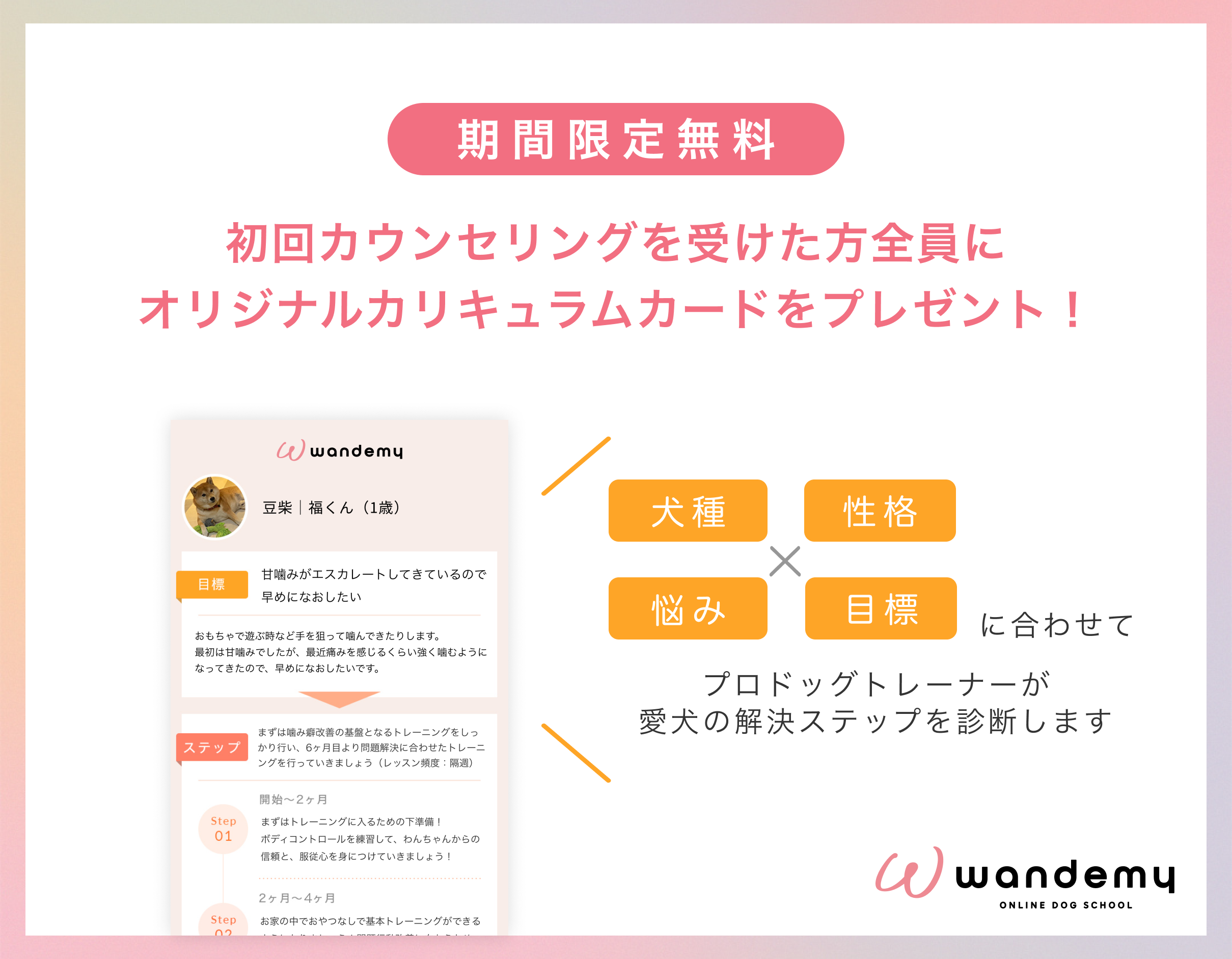 “500人の飼い主の声”から開発されたオーダーメイドカリキュラムを全国どこからでも受講オンラインドッグスクール「wandemy(ワンデミー)」が開校