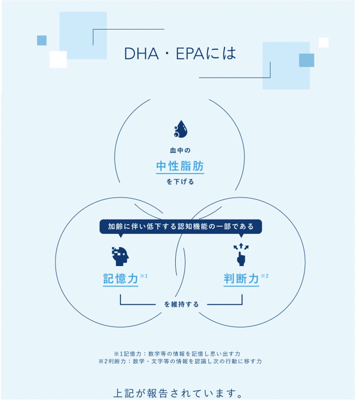 つまり、DHA・EPAが含まれる三ツ星たまごを1日2個摂取することで、