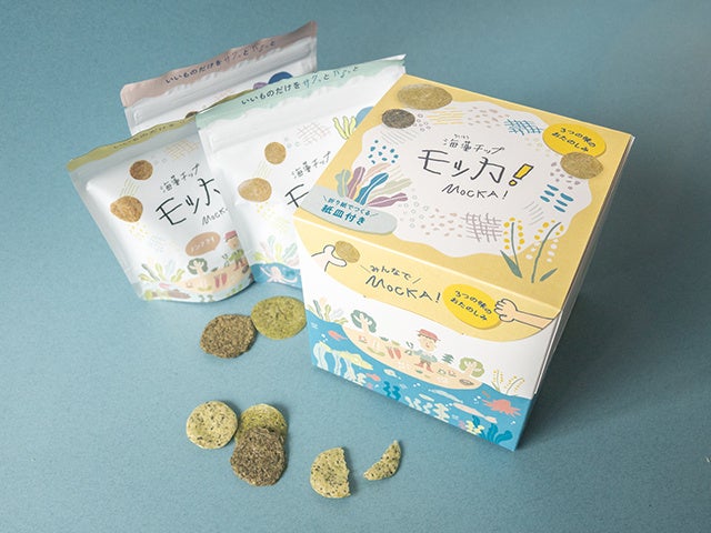 海藻は地味で目立たない海の生き物ですが、私たちの暮らしを支える素晴らしい存在です。もっとみんなにその美味しさ、魅力を知ってほしいという思いから「海藻チップモッカ!」は生まれました。海藻の米菓という意味の「藻っ菓」や、海藻の香り「藻っ香」を楽しんでほしいという願いを込めて名前を付けました。