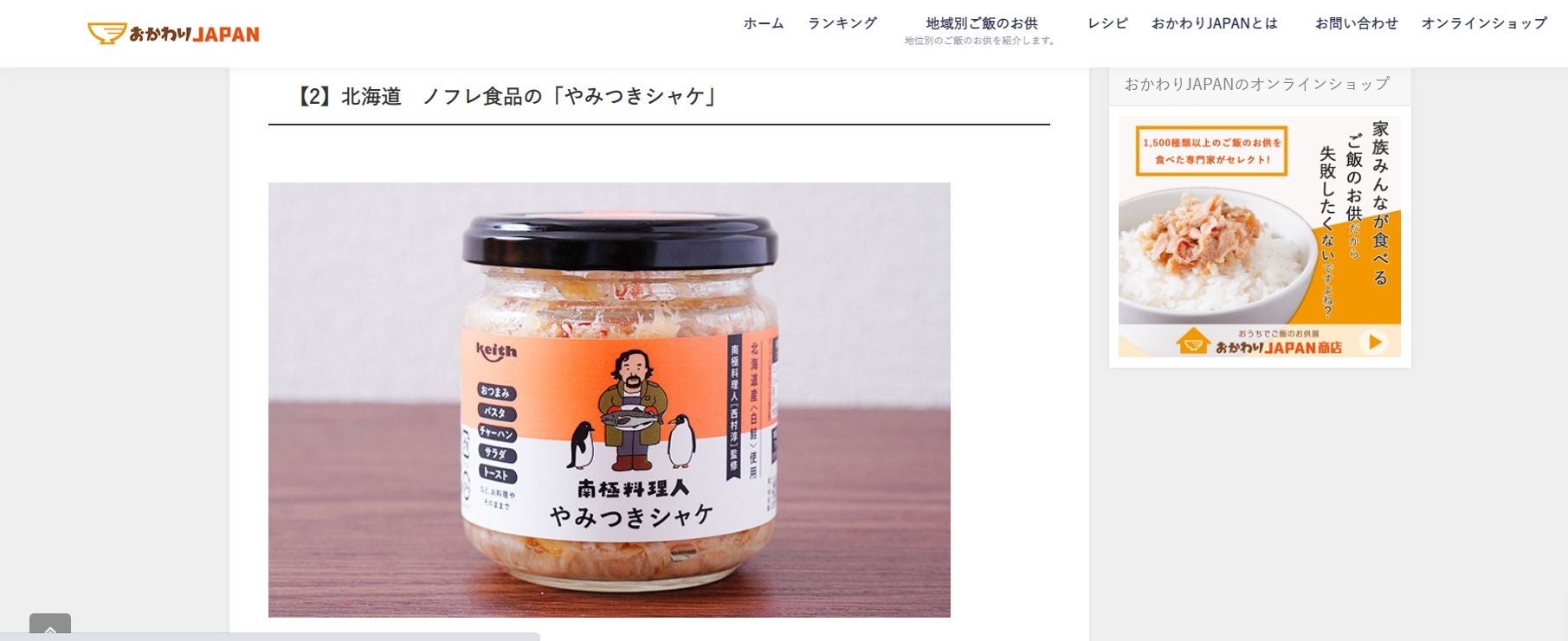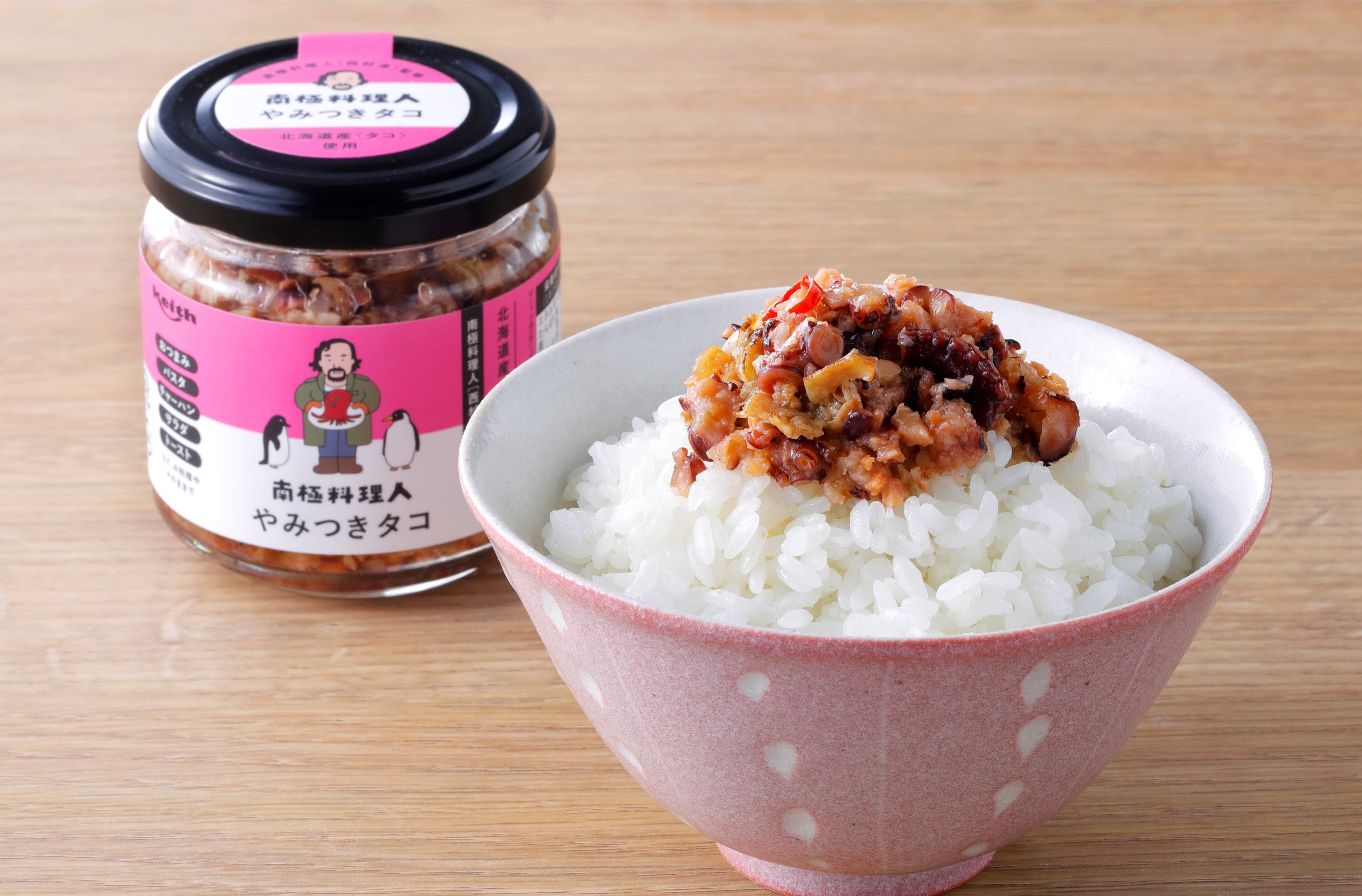 累計出荷数10万本を突破した、南極料理人のやみつきシャケ、タコ、タラ、ニシンのやみつきシリーズ。これからも続々と各種メディアでもご紹介いただけること間違い無し!