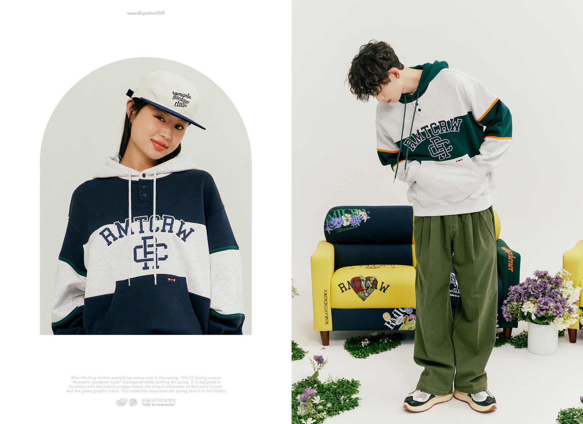 Romantic Crownは、2009年に韓国で設立され、「Life is Romantic」をコンセプトとしたユニセックスブランドです。日常を「物語」と捉え、毎日の様々な体験から得たインスピレーションをモチーフに、独自のアイデンティティーさや、トレンディーさを散りばめたデザインが特徴です。今回の春夏コレクションでは「ROMANTIC GARDENER CLUB」をテーマに、自然、花、緑をコンセプトとした明るい、春らしいデザインを施しています。