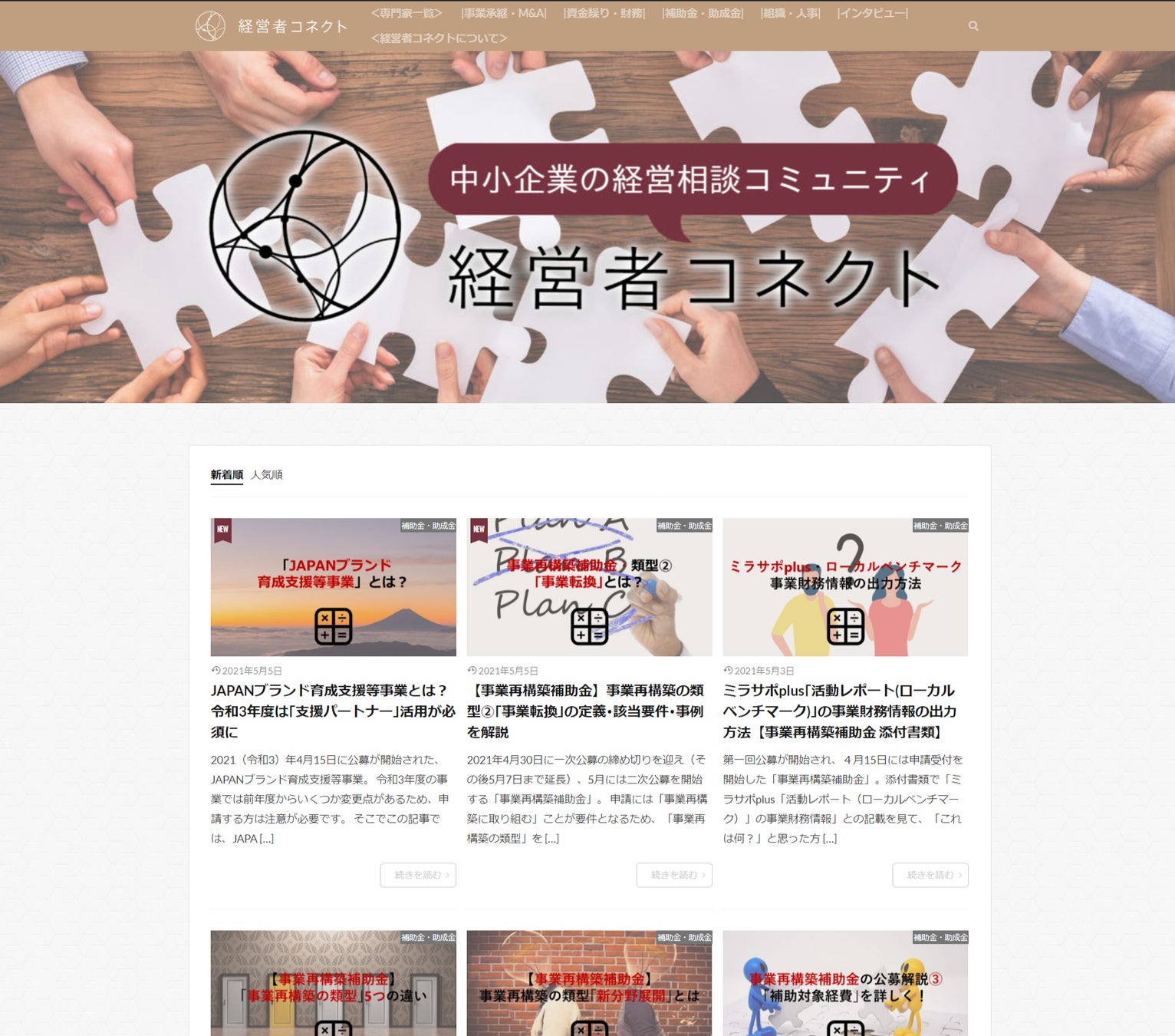 補助金情報も豊富な経営情報メディアにおいて約200本の記事を公開しており、制度変更など、常に最新の情報を入手しています。
